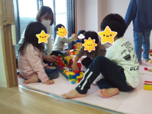午後の時間、レゴブロック遊びを数人集まり