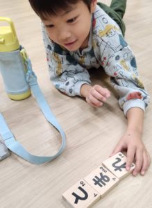 積み木ではひらがなを並べて言葉を作る姿も見られましたよ✨
