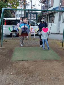 ぶらんこに乗って楽しそう♪