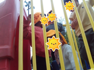 ボールキャッチ😊 未分類 2024.11.26 こんにちは 今日の公園は、滑り台が人気でした! 滑り台の上から下にいる職員に「ここだよ」と 笑顔で手を振ってくれたり、お友達が集まって お話をしている姿が見られました どんなお話をしていたのかな?ニコニコ笑顔でした😊 午後のサーキットは、ボールキャッチをしました 転がってくるボールをキャッチしたり 職員とキャッチボールをしました ボールをよく見て追いかけたり、キャッチが出来たね!(^^)!