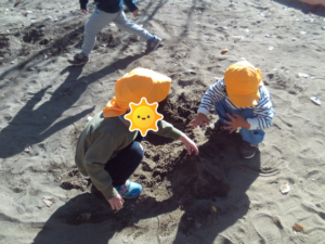 砂場でお山作ろう!(^^)! ワクワク 2024.12.02 こんにちは 秋空の公園で滑り台やお砂場で遊びました お砂場では、お友達と穴を掘ってお山作りを 楽しみました お山を作るときには、砂の感触を楽しみながら 作りました♪ 午後、ニューブロック遊びでは、消防車を 作りお友達と一緒に走らせたり、素敵な 自転車を作ってメルちゃん人形を乗せて お出掛けに行ったりしていました 途中壊れてしまっても「修理するね」と根気強く 組み立てている姿も見られました☆彡