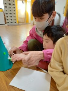クリスマス工作!! りぼんU 2024.12.03 12月2日(月)のりぼんUは、クリスマス工作をしました🎄 なかなかボンドが付かなくて難しいですが集中して工作に取り組んでいました(^^)/ 後半はしじゅうから第2公園でしっぽ取りをしました! バンダナをズボンの後ろに入れ、逃げました!追いかける人は、しっぽを取りに全力で追いかけました!! どちらも息切れするほど夢中になって走りました(^-^) りぼんU