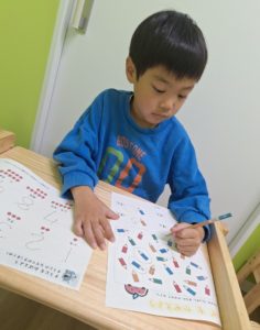 数字の書き順を練習してから、色鉛筆の数を色ごとに数えて数字を書きました。とっても上手に数字を書くことができましたよ☆