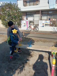 水曜日のりぼん りぼん 2024.12.062024.12.09 こんにちは! 水曜日のりぼんは 午前の部は公園へ。 スタッフと手をしっかり握って。 安全に公園まで歩いていけました。 公園ではシーソーがお気に入り☆ 大喜びでした。 午後の部は太鼓の練習から。 「お~に~ぎ~り♪」 「お~に~ぎ~り!」 そして外のお花にお水をあげに行ったら 「ぼくも!!」と付いて来てくれました。 嬉しそうにお水をあげてくれました。 ありがとう☆ りぼん
