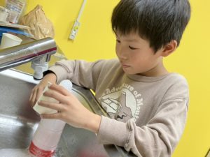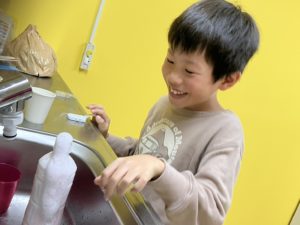 食べ終わったら実験あそびの準備。