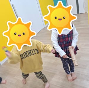 今日は、クリスマスソングを聴きながら合奏をしました。タンバリンやマラカスなど、いろいろな楽器を持ってリズムに合わせて音を鳴らしながら体を動かしましたよ! あわてんぼうのサンタクロース、ジングルベルの歌を歌いながらとっても楽しんでいました。
