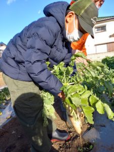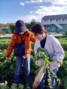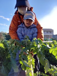 大根掘り! りぼんU 2024.12.162024.12.17 こんにちは。 12月14日(土)は晴天のなか大根掘りをしてきました。 前半はおやつのお買い物やお散歩にでかけて電車をたくさん見ました。 後半は練馬区の農家さんのお宅へ大根掘りに行ってきました! 駐車場から畑までは少し歩きましたが歩いているうちに大根をとるぞー!!と気持ちを高めながら歩いて行きました。畑ではとても立派な大根を収穫させていただきました♪畑からの帰りも自分の大根を重い~と言いながら最後まで運ぶことができました。 りぼんU