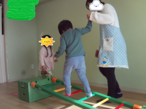 はしご渡り ワクワク 2024.12.18 こんにちは。 今日は午後はしご渡りをしました。足裏をしっかりつけて渡ることが出来ました。 繰り返し行うごとに上達しています。 お弁当作りをしたお友達は、「どれにしよっか。」とお友達と話しながら遊んでいました。