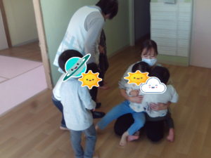 今日の室内遊びを見るとそれぞれ4月の時より変化し、成長されていることを感じました。