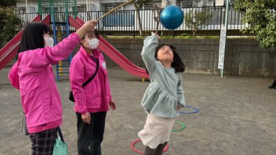 後半は公園に行く予定でしたがお天気が急変してしまったので室内でペガーボールとカルタ遊びをして楽しみました。