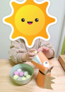 ポンポンを恐竜さんに食べさせてあげたよ☆楽しんで何度も行っていましたよ☺