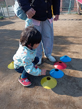 午前中は公園でマーカーに合わせてジャンプ!
