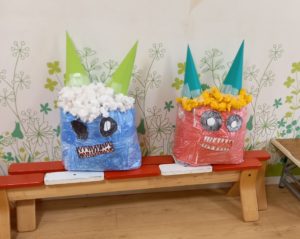 節分工作👹 りぼんU 2025.01.28 1月27日(月)のりぼんUでは、節分工作をしました! 赤鬼と青鬼に髪の毛・目・口をつけ、ついに完成しました!!!👹 外活動では、公園に行き、鬼ごっこをしました! 鬼の人は、赤鬼と青鬼に見立てた赤バトンと青バトンを持ち、追いかけました! 工作を終え、外でスッキリと体を動かしました(*^^*) りぼんU