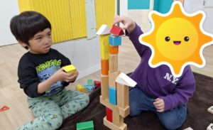 お友だちと仲良く積み木をたくさん積み上げることが出来ました☆