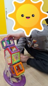 コーナー遊びでは、磁石、積み木、手先玩具での活動をしました。