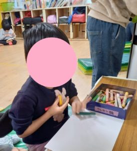 お絵描きでは○△□~や色んな色を使いながら○を描いたりと好きなものをいろいろ描いてみました✍とても楽しんでくれていました🎵また機会があればお絵描きにチャレンジしてみたいと思います(^O^)/