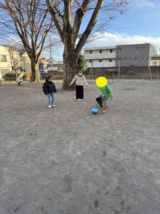 キックボールは公園の壁に向かってボールを蹴る!をやったのですが一蹴りで壁につく子もいれば届かない子は数回蹴って壁につくまで蹴ったり、斜めにボールが行く子もいて色々でしたがみんな最後までチャレンジしてくれました😊