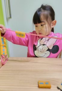 洗濯ばさみを指先を使って上手に長く繋げることが出来ました☆