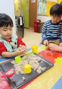 室内でできる砂遊び、最高です(^^)/