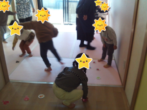 今日は室内でエビカニクスの体操、分類ゲーム、むっくりくまさんを