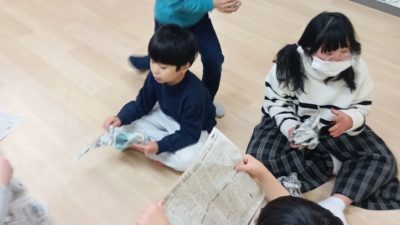 紙風船はつぶれやすいのでそっと手のひらで持ったり、ポンポンと優しく