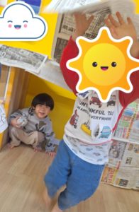 お家を作って中にみんなで一緒にはいったり、「行ってきます」「行ってらっしゃい」のごっこを楽しんだりしていましたよ。