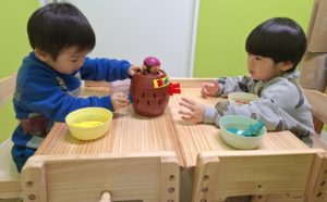 お友だちと一緒にルールを守って、黒ひげ危機一髪をしました。黒ひげとぶかな?