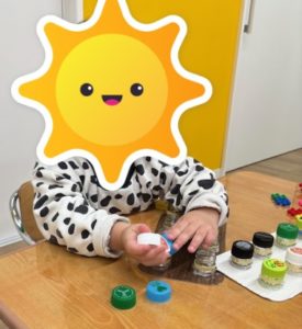 キャップの蓋を取ったり付けたり。感触を楽しみました☆