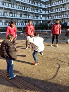 早稲田のお兄さんと交流をしよう!! りぼんU 2025.02.102025.02.13 2月10日(月)のりぼんUは、早稲田のお兄さんと交流をしました。 せせらぎ公園に行き、鬼ごっこや大縄をしました! お兄さんと手をつないで追いかけたり逃げたりしました(^-^) 大縄では、お兄さんに縄を持ってもらい、全体で飛びました! 遊ぶまえには自己紹介をし、お兄さんの名前を大きい声で呼んだりと、楽しく盛り上がりました(^^)/ なんでもじかんでは、アスレチックや砂場などで遊びました! 普段とはまた違った雰囲気でとても良かったです(*^^*) りぼんU