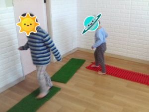 バランスウェーブ)をしました。進む方向や順番に気をつけながら、