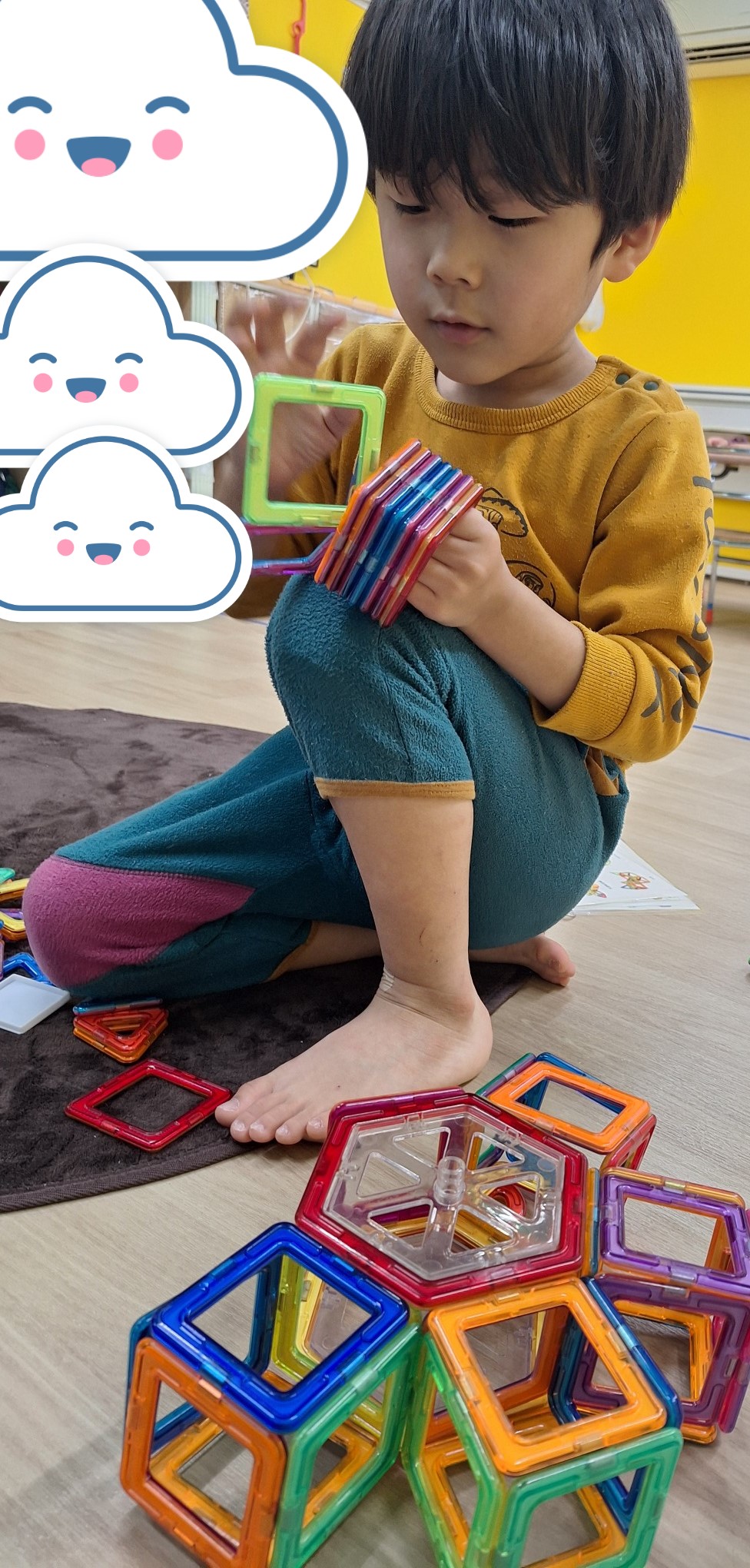 午後は、コーナー遊びをしました。磁石、積み木、パズルを楽しみました。