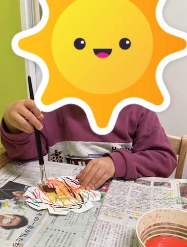 個別ではタンポポの製作をしました。クレヨンで模様を描き、絵の具をその上から塗りはじき絵にして仕上げました。素敵な作品になりましたよ。