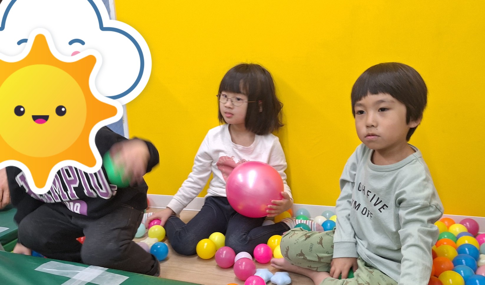 その後はボール遊びをしました。今日はボールプールを作ってその中に入ったり、キャッチボールや、ボール投げをして遊びました。