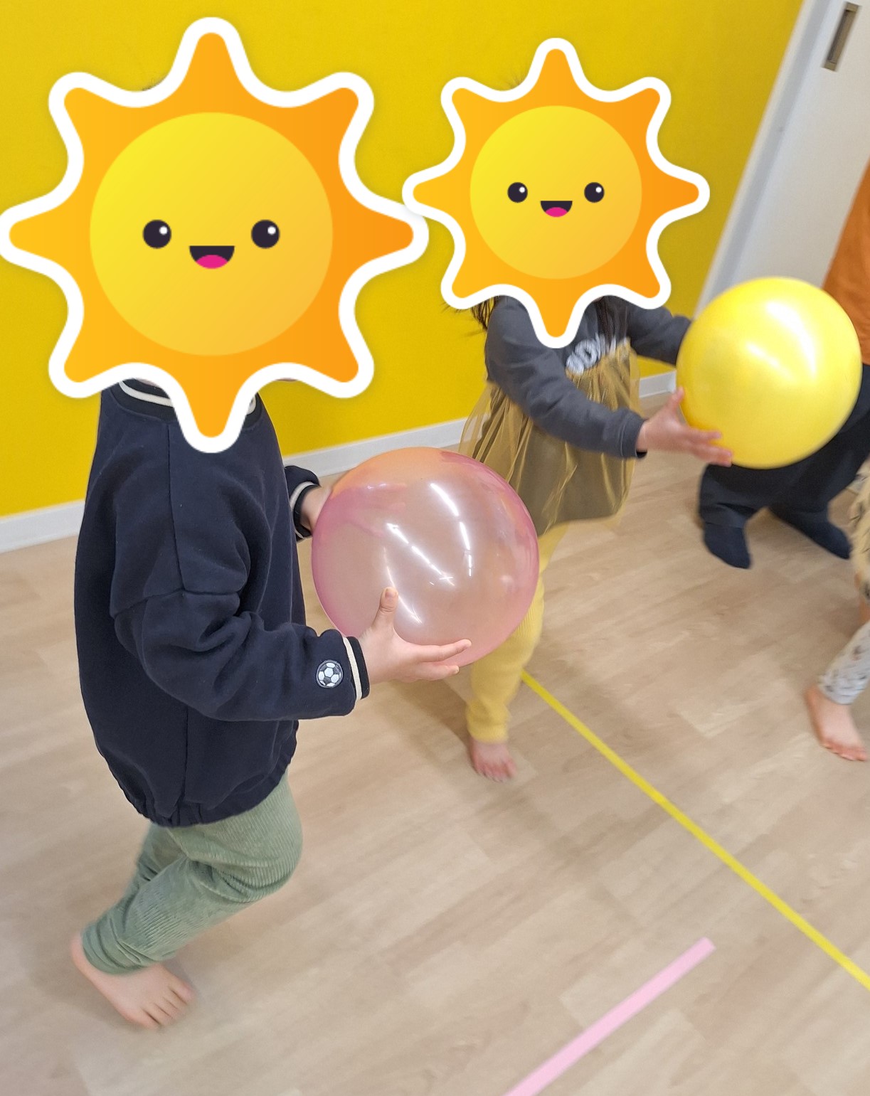 その後、ボールと風船遊びををしました。ボールあて追いかけっこや、キャッチボール、段ボールで作ったボール滑り台、風船をポンポ飛ばすとも楽しみ体を動かしました。