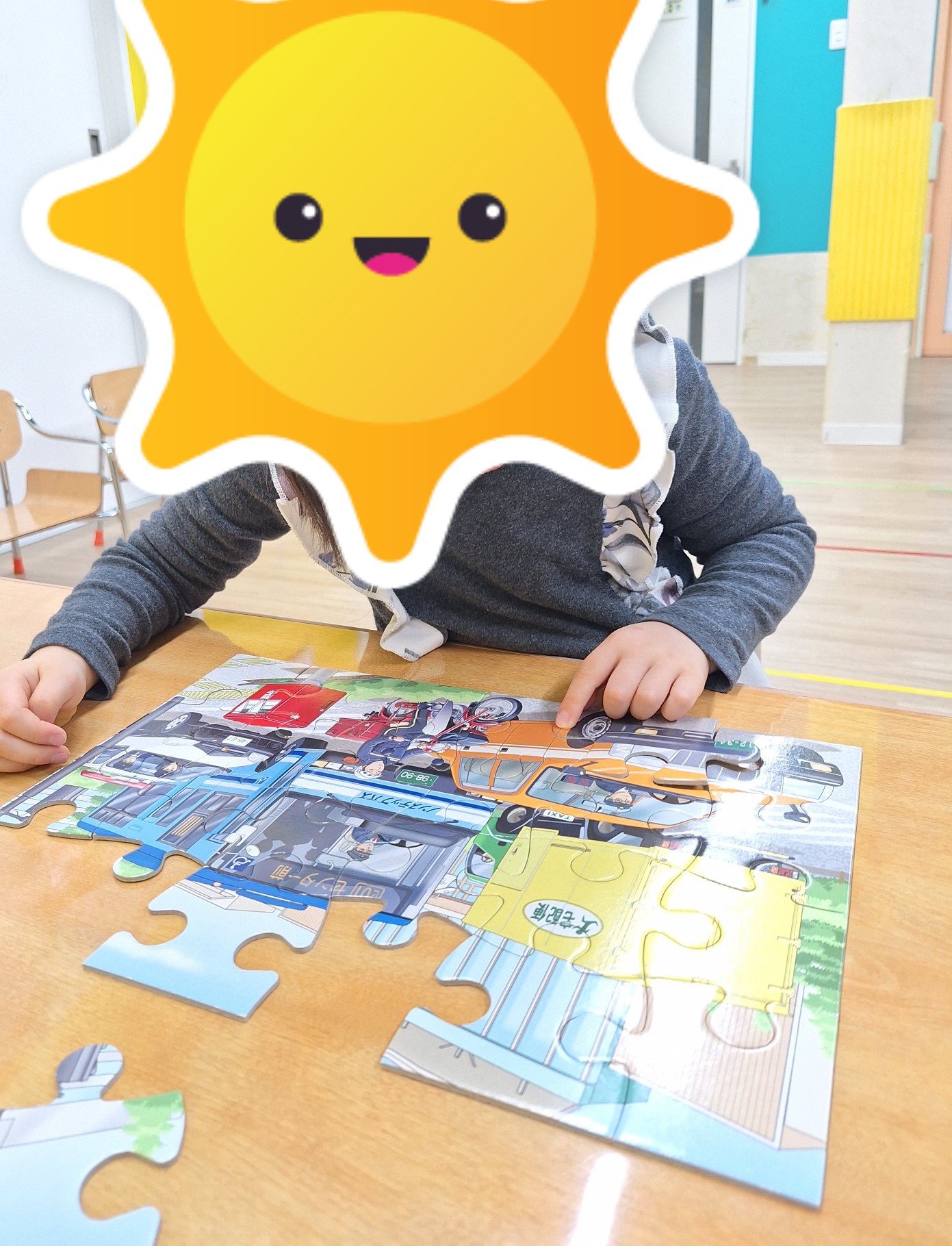 午後は、コーナー遊びをしました。。今日は、お絵描き、パズル、積み木をそれぞれの興味により行いました。
