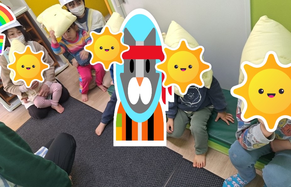 そして避難をする際には、喋らずスタッフの指示を聞き、行動することができました。防災頭巾を被るのが少し怖いお友だちもいましたが、頭を守って避難をすることが全員できましたよ✨