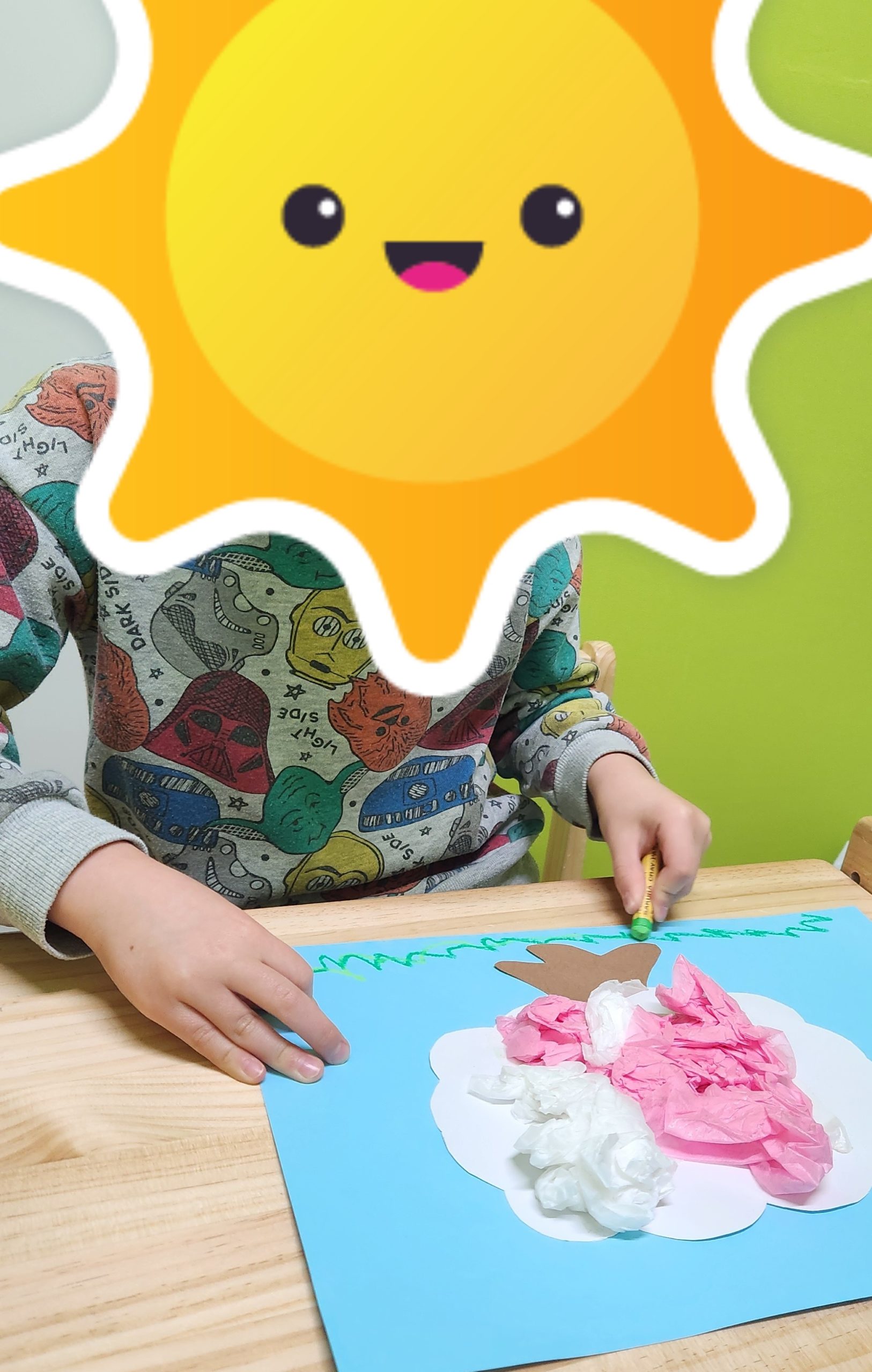 個別では桜の制作をしました。花紙を丸め画用紙に貼っていきます。各々素敵な桜に仕上がりましたよ🌸
