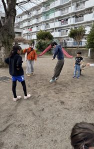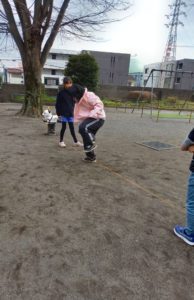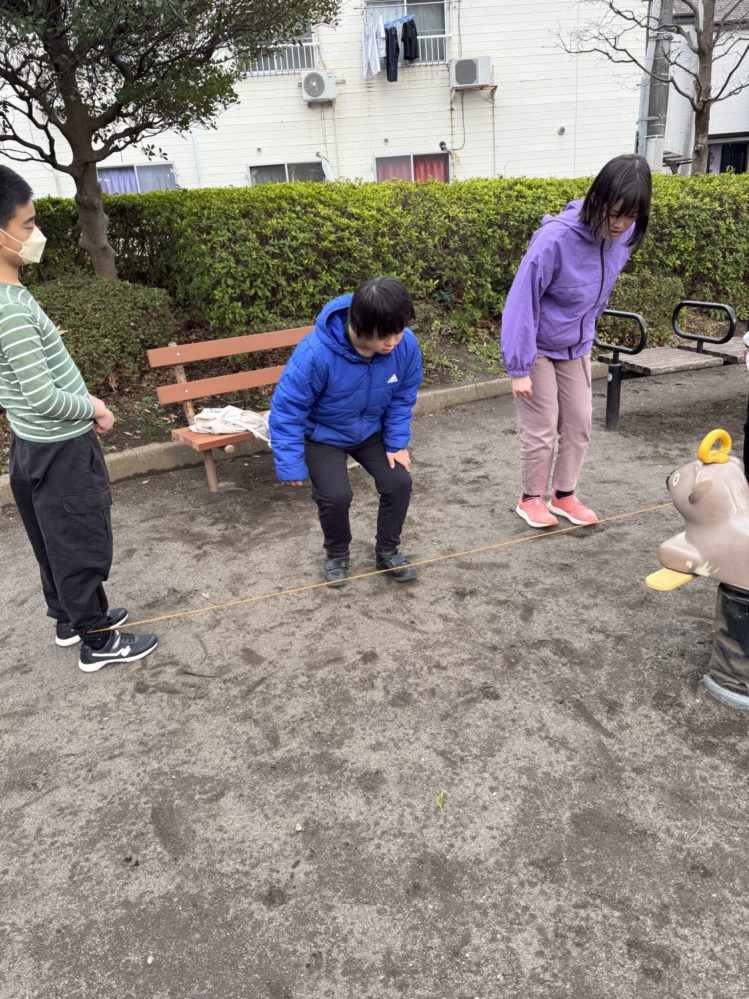 公園でゴム跳び! りぼんU 2025.03.14 こんにちは。 3月13日(木)のりぼんUでは前半組は公園で少し遊んでからおやつのお買い物と、帰りに電車を見てきました🚃 後半組は公園でゴム跳びをしました!両足でジャンプするよーと声掛けしながら、難しいお友達もいましたがみんな頑張ってチャレンジしてくれました(^O^)/その後は自由遊びで楽しく体を動かしました😊 りぼんU