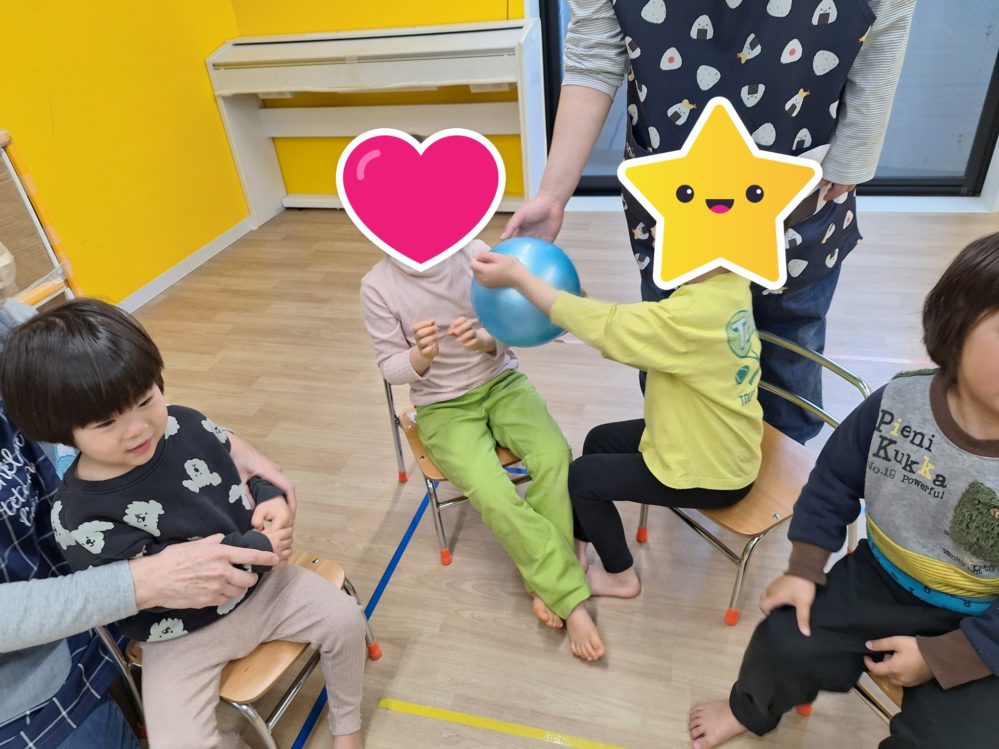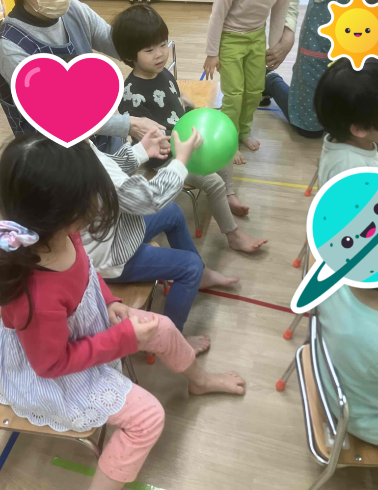 お友だちとの距離感や、渡す時の力加減などを意識しながら活動しました!