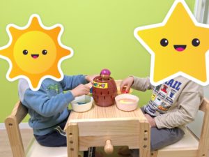 コーナー遊びで先生にケーキを作ってくれたおともだち。