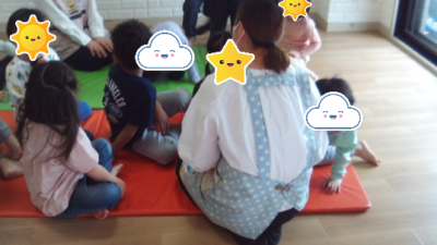 りぼんと一緒に遊ぼう!! りぼんU 2025.03.26 3月25日(火)のりぼんUは、武道場に行きりぼんと一緒に遊びました! ラジオ体操や風船遊びをし、なんでも時間では思いきり走ったりして体を動かしました!! 4月の壁面制作もしました! 絵の具塗りで色を分け細かいところも一生懸命塗っていました(^^)/ りぼんU