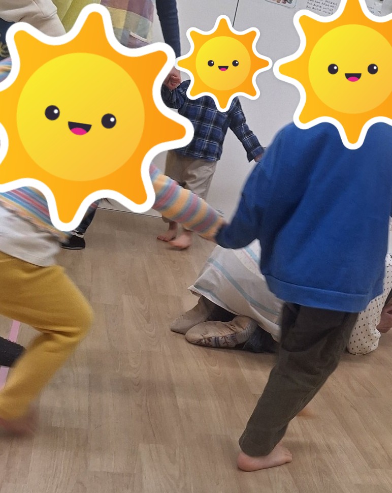 まずみんなで手をつないで輪になり、お歌を歌っていきます。上手にみんなで手をつなぐことができましたよ✨