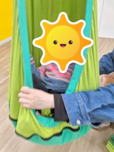 その後は、ハンモックとトランポリンをしました。ハンモックでたくさん揺られて、トランポリンをたくさん跳んで、気持ちよく体を動かすことが出来ました。
