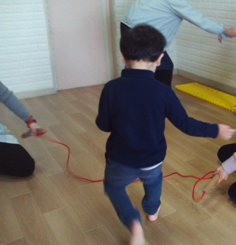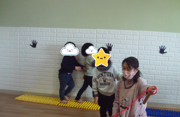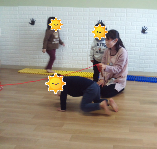 始めの室内遊びは、縄跳びとロールウォーカーでした