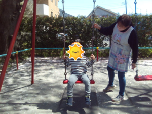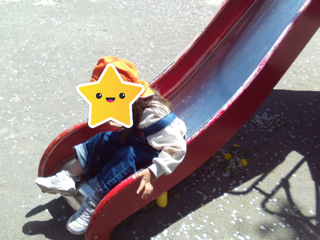 桜が舞う中、公園で滑り台やブランコをして楽しみました🌸
