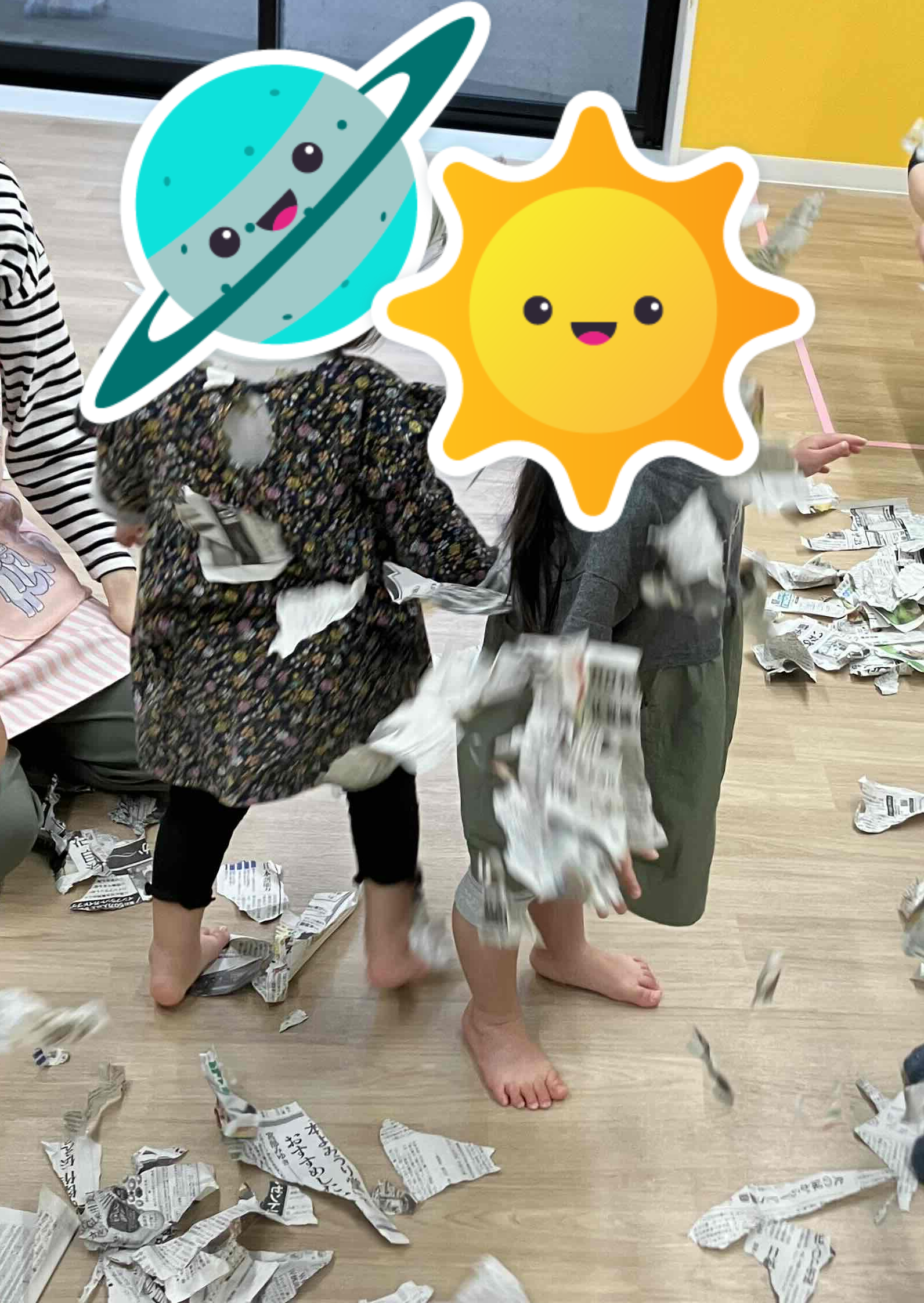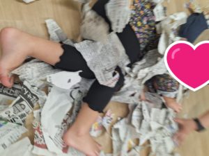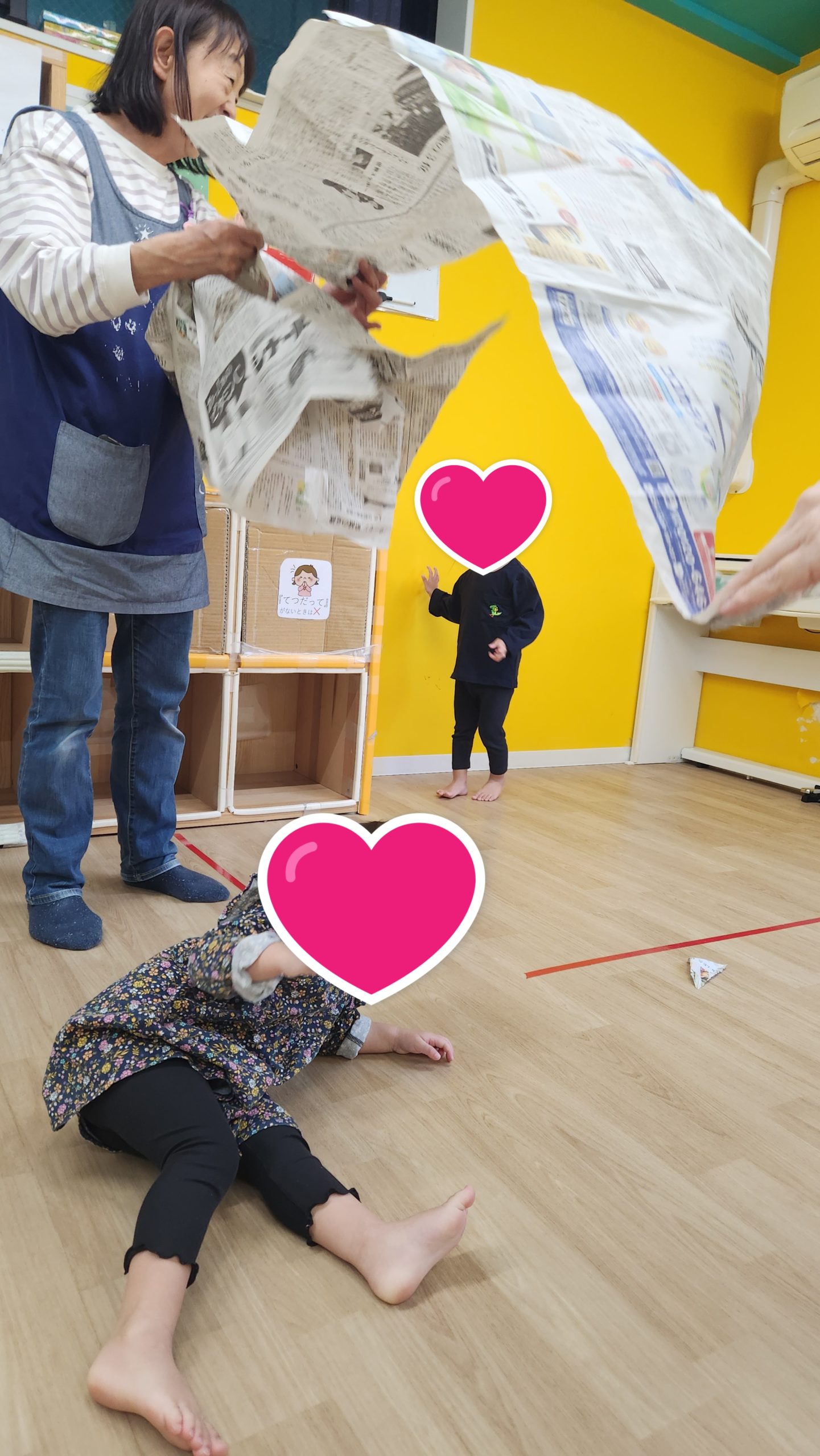 今日のワクワク上石神井では、新聞遊びと、ハンモックをしました。