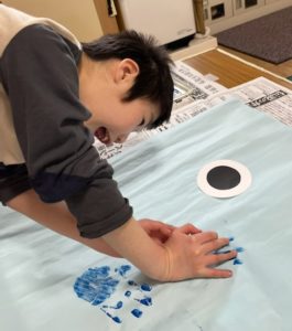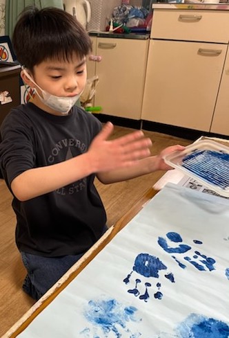 公園でケンケンパ! りぼんU 2025.04.21 今日は、公園でみんなでケンケンパ!をして遊びました✨ スピーディーに跳ぶ子も、慎重に跳ぶ子も、みんな楽しんで参加できていました🌼🎵 室内遊びでは、音楽に合わせて体を動かしたり、みんなでつながって行進して、盛り上がりました! こいのぼり制作も始まり、手形で鯉のうろこを表現しています😊今日は暑かったので、ひんやりした絵の具の感触も気持ちよかったようです🎵 りぼんU