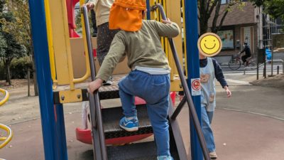 階段は手すりにつかまりながら一歩一歩自分の足で昇降する