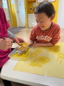 こいのぼり制作と縄跳び☆彡 りぼんU 2025.04.24 今日も暑かったですね♨ 今日のりぼんUでは、こいのぼり制作の続きと、公園では縄跳びをしました🎵 絵の具がひんやりして気持ち良いので、一度始めると皆、なかなかやめられません(笑) 公園での縄跳びでは、お兄さんたちが率先して縄を動かす係の手伝いをしてくれ、みんな楽しく跳ぶことができました🌼 優しく関わり、お姉さんが一緒に遊んでくれている場面もありましたよ😊 あたたかい気持ちになれる場面でした✨✨ りぼんU