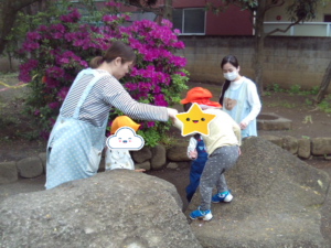 風車🌀 ワクワク 2025.04.25 こんにちは(*^-^*) つつじなどお花がきれいに咲いている公園で遊びました。サクランボの枝に似ているのを見つけたり、石の上に登ったり身体を動かしました。 個別でひも通しや風車をしました。手の巧緻性を養ったり、目と手の協応動作を向上させます。風車、ふーっと上手に息を吹きかけられたね。クルクル回るとにっこり嬉しそうでした♡ やまもと